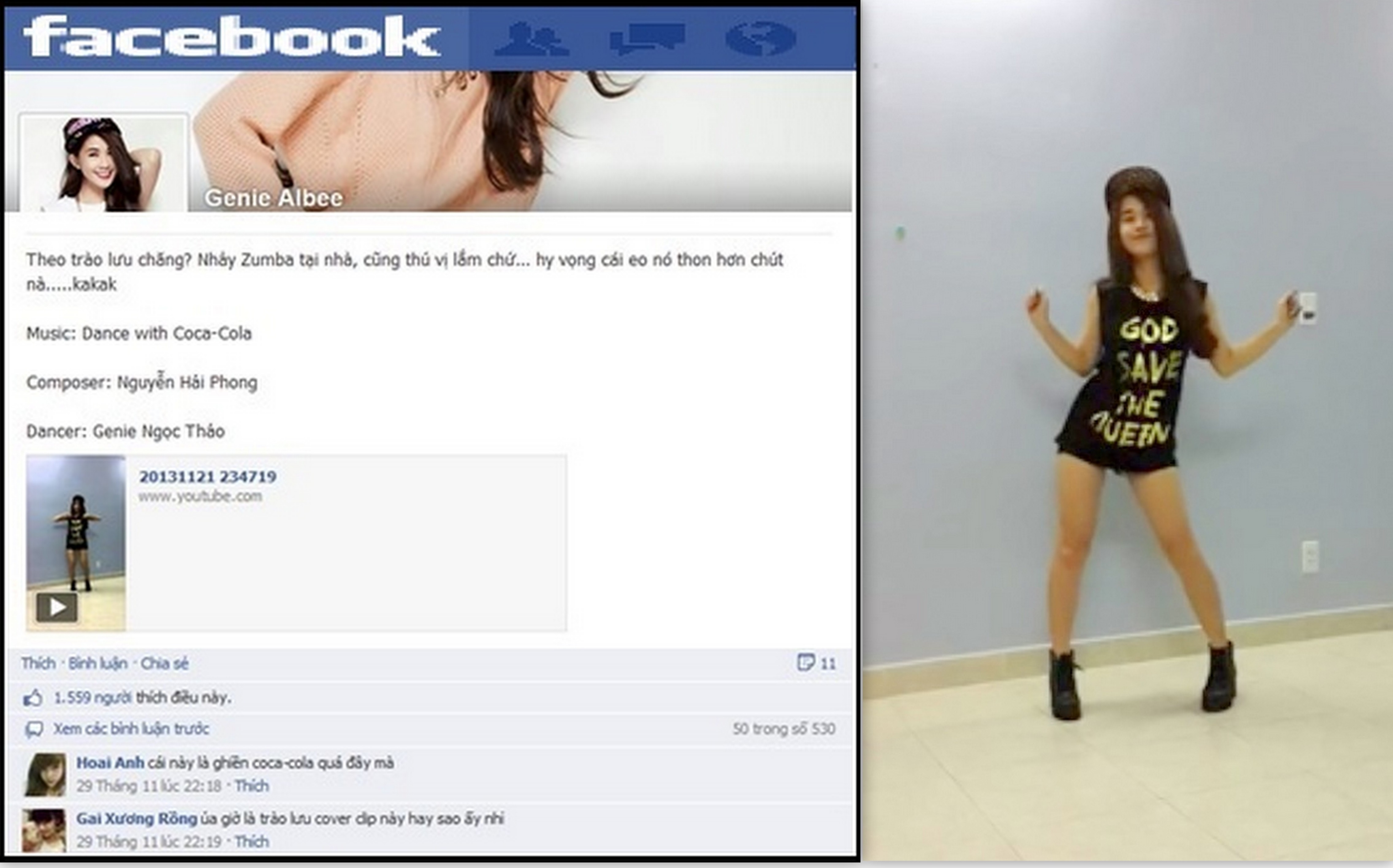 Là một trong những hot teen đầu tiên tung clip cover Dance with Coca-Cola lên Facebook, Huyền Lizzie nhanh chóng khiến fan ngưỡng mộ trước vũ đạo khỏe khoắn nhưng không kém phần đáng yêu của mình. Cô nàng tiết lộ rằng mình đã kết bài Zumba này ngay lần đầu tập nhảy ở chương trình chạy bộ Run for Children tại Hà Nội và ghiền đến giờ.