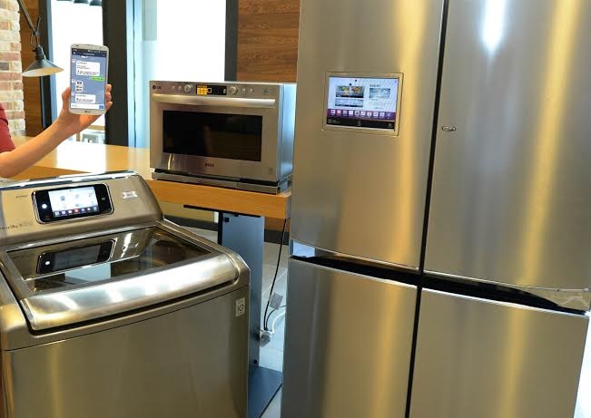 Loạt sản phẩm gia dụng thông minh thế hệ mới của LG bao gồm tủ lạnh được tích hợp camera, máy giặt được cài đặt phần mềm HomeChat, giúp người sử dụng tải và khởi động các chương trình giặt từ xa, và lò vi sóng quang có hỗ trợ NFC và Wi-Fi, thuận tiện cho việc điều khiển từ bất cứ đâu.
