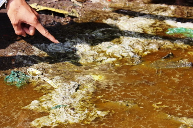| Hóa chất đổ xuống đường bốc khói ngùn ngụt. |