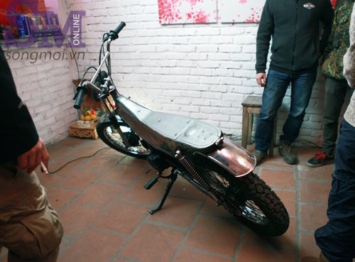 | Bình xăng, vỏ xe được gò tỷ mẩn bằng tay và hàn tích. |