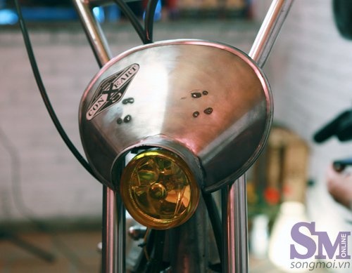 Chiếc Win 100cc được giữ nguyên bộ khung động cơ, hệ thống treo nguyên bản hình “quả chuối” vốn được nhà sản xuất thiết kế dành riêng cho người châu Á điều khiển trên địa hình đồi núi. Nhưng để thể hiện được tính cách chủ xe, những người thợ của Conxeart đã thực hiện hoàn toàn bằng tay các công đoạn làm nên chiếc xe mới. Kỳ công nhất là bộ vỏ, ống xả, mào đèn được gò bằng thép trắng và hàn tig (hàn hồ quang điện cực không nóng chảy trong môi trường khí trơ - pv).