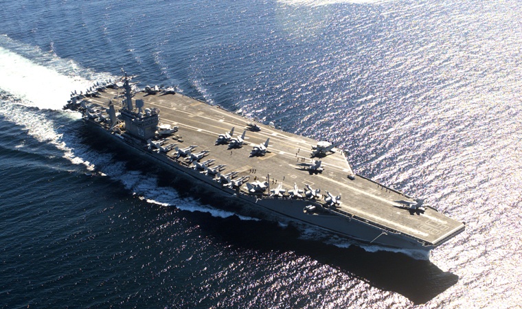| Tàu sân bay duy nhất Đô đốc Kuznetsov của Nga quá bé nhỏ và đơn độc khi so với 10 chiếc siêu tàu sân bay lớp Nimitz của Mỹ. |