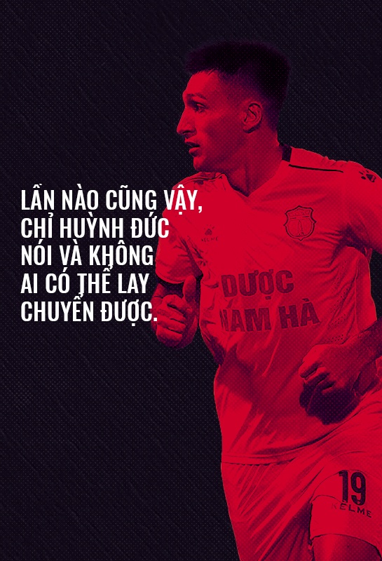 Tôi đã nói chuyện với Huỳnh Đức rất nhiều lần về chuyện đó. Tôi bảo xin lỗi anh nhưng thế này không tốt cho tôi. Lần nào cũng vậy, chỉ anh ấy nói và không ai có thể lay chuyển được. Thật khó khăn, không bao giờ có chuyện anh ấy thay đổi quyết định, thay đổi chuyện tập thể vì một người.
