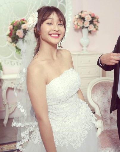 | Ở lứa tuổi học sinh, Khả Ngân đem đến sự tươi tắn khi khoác lên mình bộ trang phục cưới. (Ảnh: NVCC). |