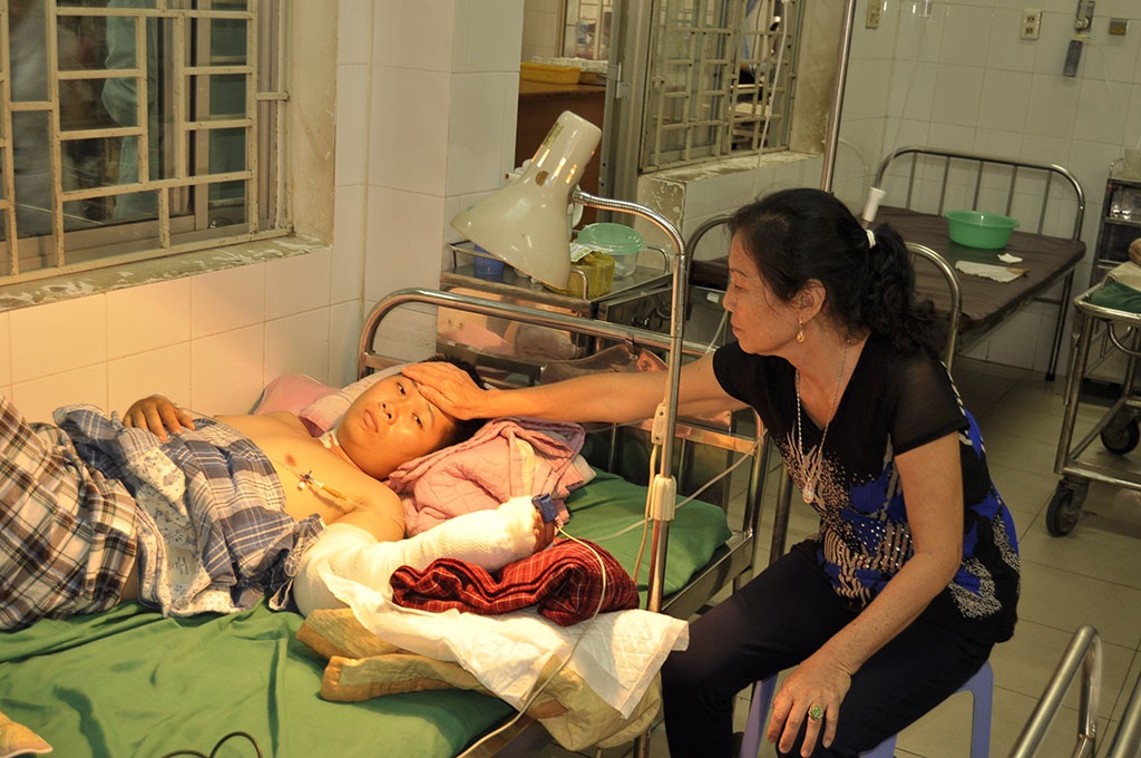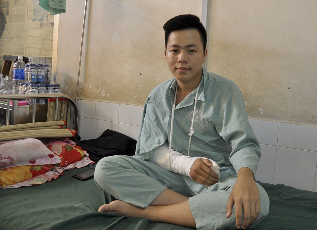 | Nguyễn Quốc Hội đang điều trị vết thương tại bệnh viện. |