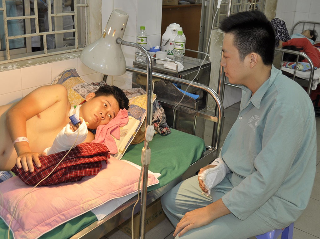Một bác sĩ cho biết, vết thương của Hội và Sơn đang tiến triển tốt. Tuy nhiên, để cánh tay bị thương hoạt động bình thường, 2 bệnh nhân phải tiếp tục điều trị trong thời gian dài. Bên cạnh đó, Sơn và Hội cần áp dụng các biện pháp vật lý trị liệu.