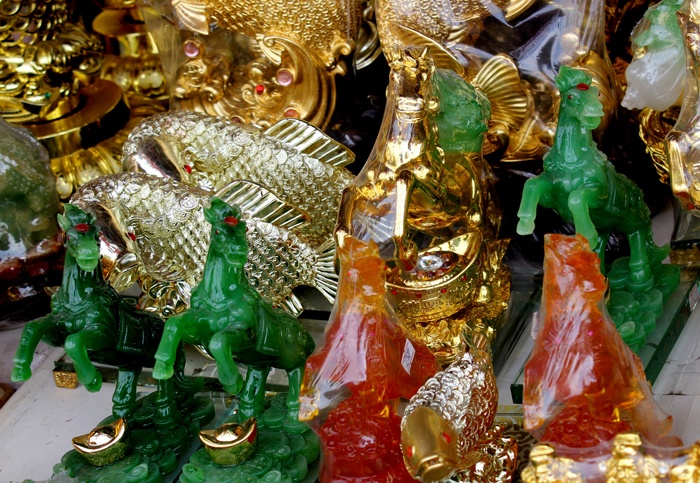 Đường Hải Thượng Lãn Ông (quận 5, TP.HCM) là nơi tập trung bán các mặt hàng trang trí Tết. Bắt đầu bày bán từ cuối tháng 12, mặc dù sức mua không bằng các năm trước, nhưng chủ các cửa hàng vẫn được "động viên" phần nào nhờ các món đồ trang trí hình ngựa bán rất chạy.