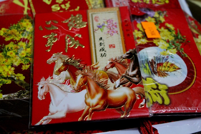 Người Việt Nam rất tin vào câu thành ngữ “Mã đáo thành công”. Bởi vậy mà hình ảnh con ngựa rất được người dân ưa thích, chọn làm món đồ trang trí trong nhà. Đặc biệt, trong dịp Tết Giáp Ngọ năm nay thì đồ trang trí hình ngựa càng được chú ý nhiều hơn. Đánh trúng tâm lý khách hàng, năm nay các mặt hàng trang trí đều dùng những chi tiết hình ngựa. Theo đó, từ phong bao lì xì, thiệp chúc mừng năm mới, câu đối,...đều in hình ngựa.