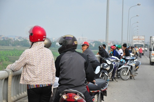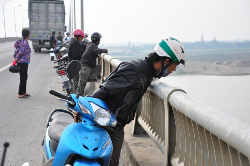 | Nhiều người dân đã kéo tới khu vực cầu Yên Lệnh để theo dõi cuộc tìm kiếm. |