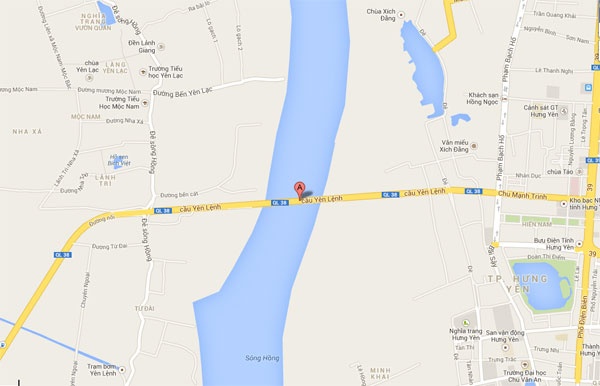 Cầu Yên Lệnh bắc qua sông Hồng nối tỉnh Hưng Yên và Hà Nam, cách Hà Nội hơn 60km. |