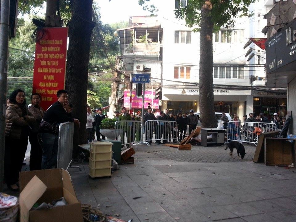 8h sáng 12/12, khi nhà chức trách quận Hoàn Kiếm (Hà Nội) đưa lực lượng tới cưỡng chế ngôi nhà 61B Lò Sũ (phường Lý Thái Tổ) thì gặp 2 người ôm can xăng ngồi cố thủ ở tầng 3. Nhà chức trách đã bao vây ngôi nhà 4 tầng ở cả hai hướng phố Lò Sũ và phố Lý Thái Tổ; đồng thời liên tục vận động nhưng hai người vẫn không ra ngoài.