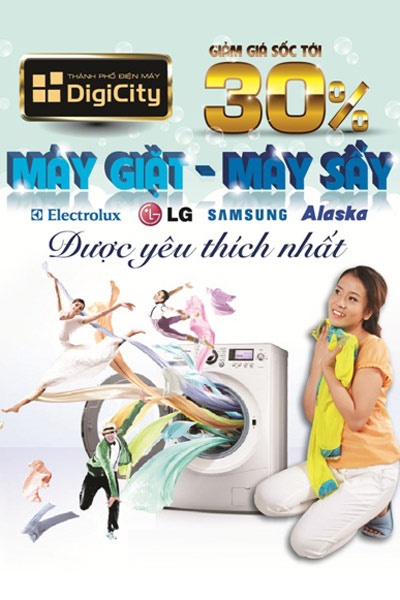 Song song với chương trình mua bếp tặng máy hút mùi trên, DigiCity bắt đầu triển khai chương trình giảm giá tới 30% các loại máy giặt, máy sấy được yêu thích nhất, thông qua bình chọn của các khách hàng. Phần lớn các loại máy giặt được ưa chuộng là máy lồng ngang, giặt sạch hơn và tiết kiện hơn.