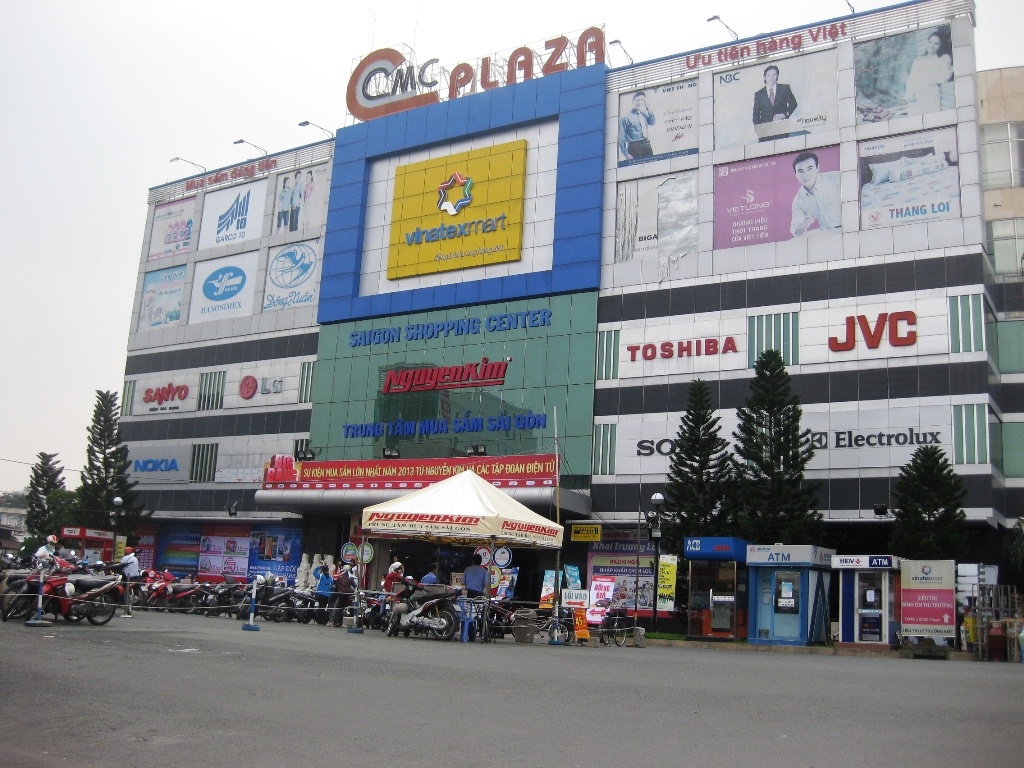 Khung cảnh tấp nập bên ngoài trung tâm mua sắm.