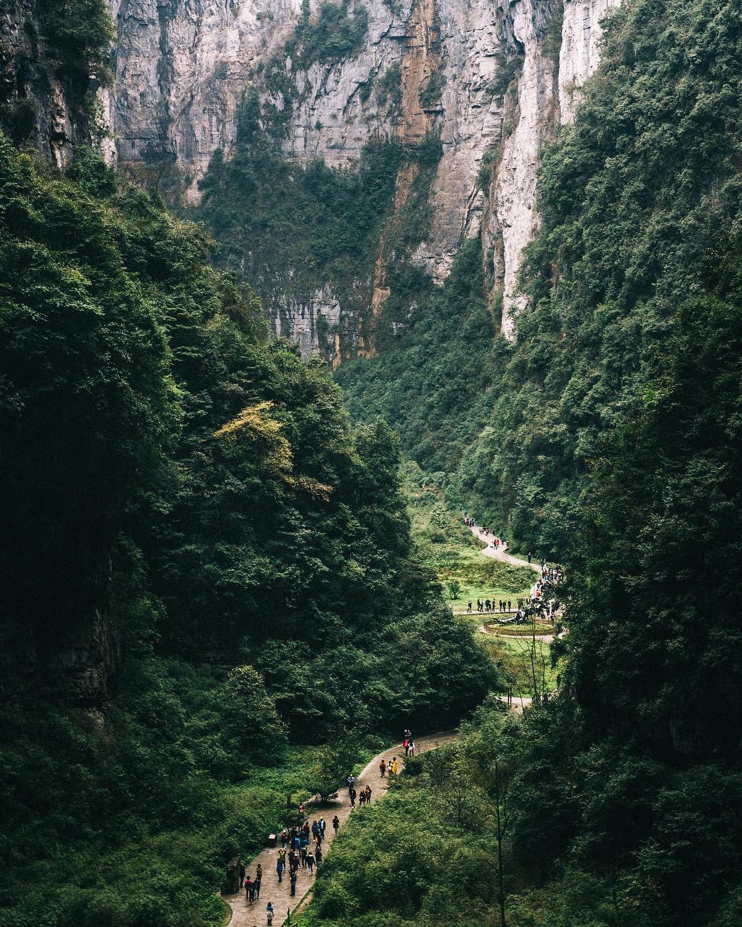 Con đường có hình dáng ấn tượng này tạo cho du khách sự thích thú và trở thành một trong những điểm nhất định phải check-in của nhiều người khi đến công viên rừng quốc gia Tiên Nữ Sơn. Công viên nằm trong khu danh lam thắng cảnh Vũ Long ở hạ lưu sông Ngô Giang phía đông nam thành phố Trùng Khánh (Trung Quốc). Ảnh: Vivi6n, Chloe. |