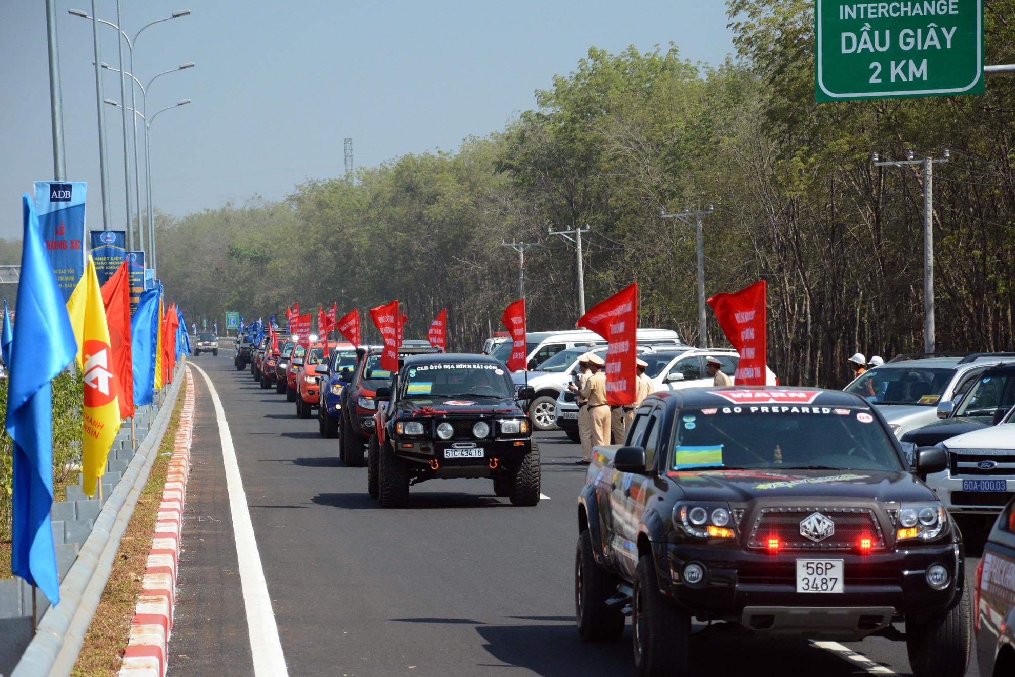 Ngay sau lễ thông xe toàn tuyến cao tốc TP HCM - Long Thành - Dầu Giây, gần 100 chiếc ôtô, môtô đã có màn diễu hành hoành tráng.