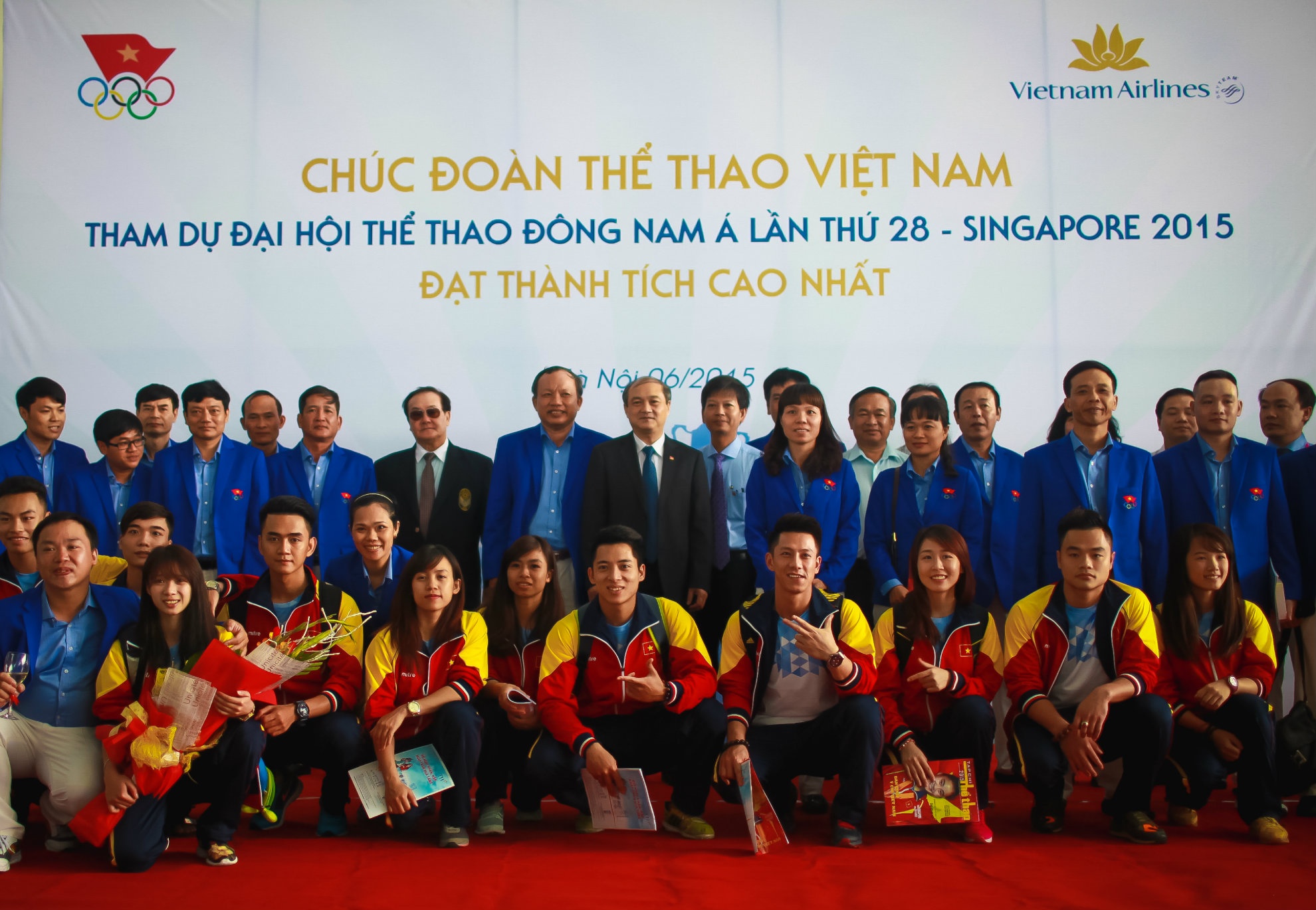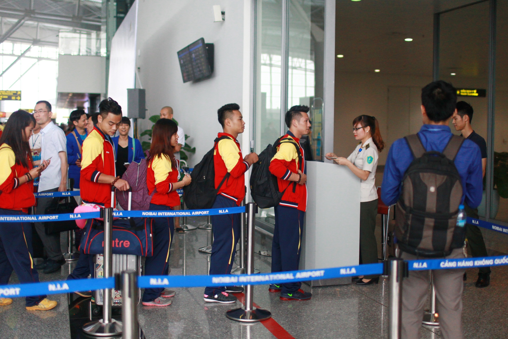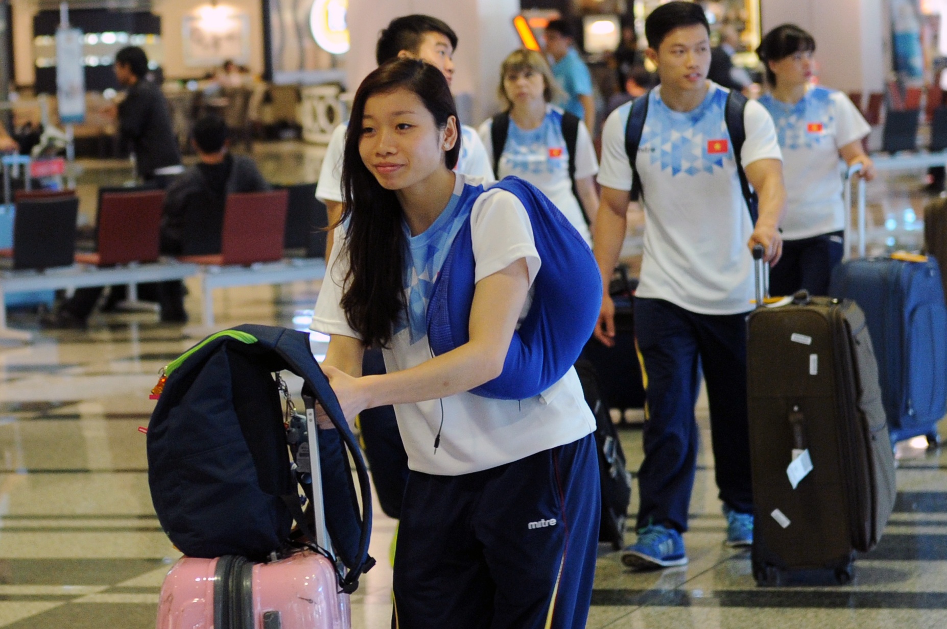 | Ngay sau đó, đoàn VĐV Việt Nam làm thủ tục xuất cảnh và ra máy bay. Đoàn được Vietnam Airlines tài trợ vận chuyển miễn phí toàn bộ trang thiết bị, dụng cụ thi đấu từ Hà Nội và TP HCM đến Singapore. |