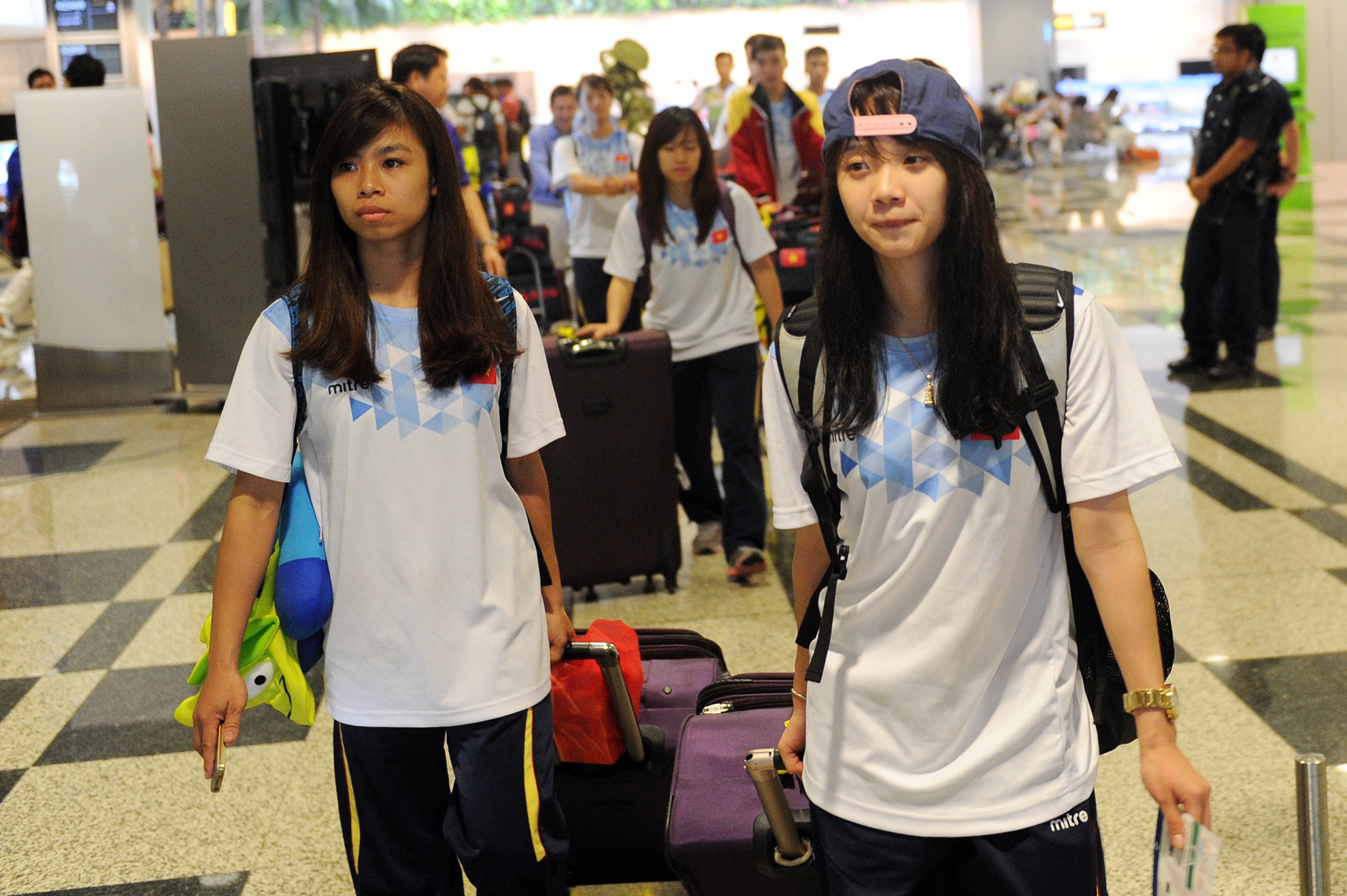 | 20 thành viên của đội tuyển wushu cũng đã có mặt để sẵn sàng tranh tài. Trong ảnh là 2 nhà vô địch SEA Games 27 là Dương Thúy Vi (phải) và Hoàng Thị Phương Giang. |
