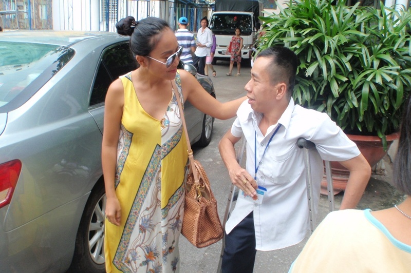 | Tại mái ấm Mai Tâm, nơi đang nuôi dưỡng những trẻ em nhiễm HIV, Đoan Trang không ngăn được nước mắt. |