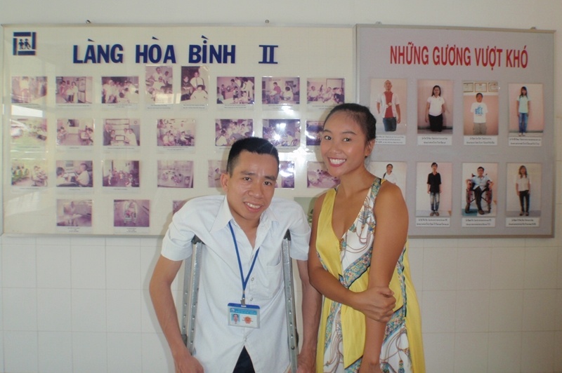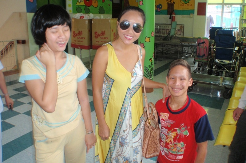 | Rời mái ấm Mai Tâm, Đoan Trang tiếp tục đến Làng Hòa Bình (Bệnh viện Từ Dũ), nơi đang nuôi dưỡng các em nhỏ mắc những căn bệnh khuyết tật, có em đã mồ côi cha mẹ từ khi lọt lòng. |