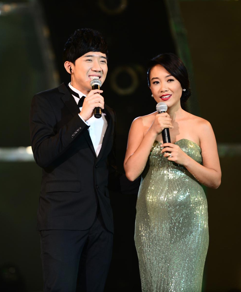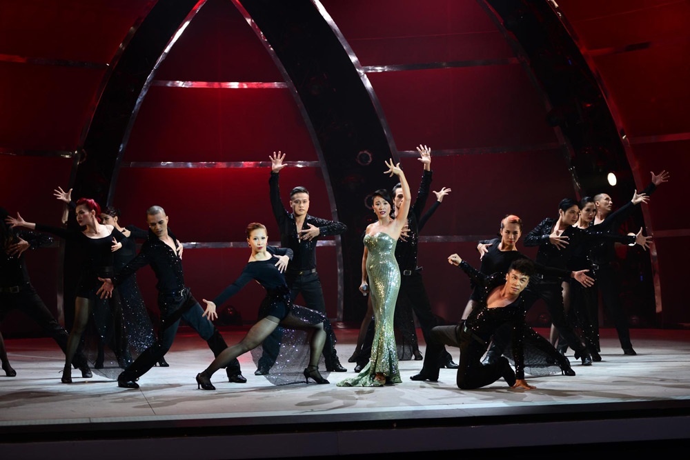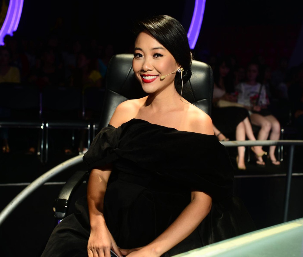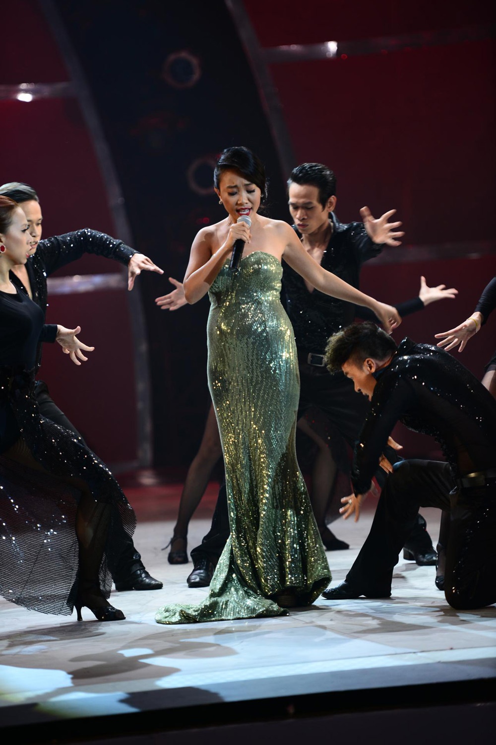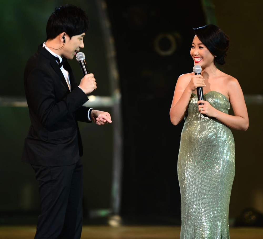 | Mặc dù mang bầu không thể nhảy nhưng tiết mục của Đoan Trang được dàn dựng khá công phu. |