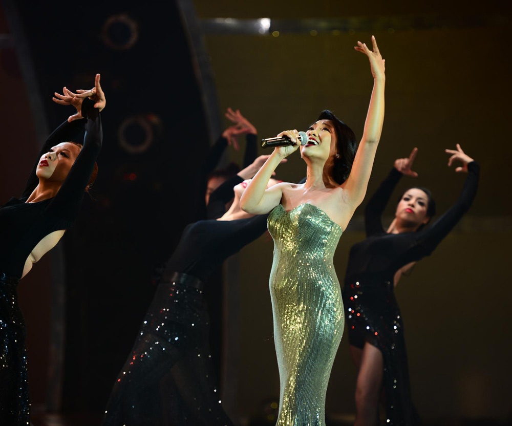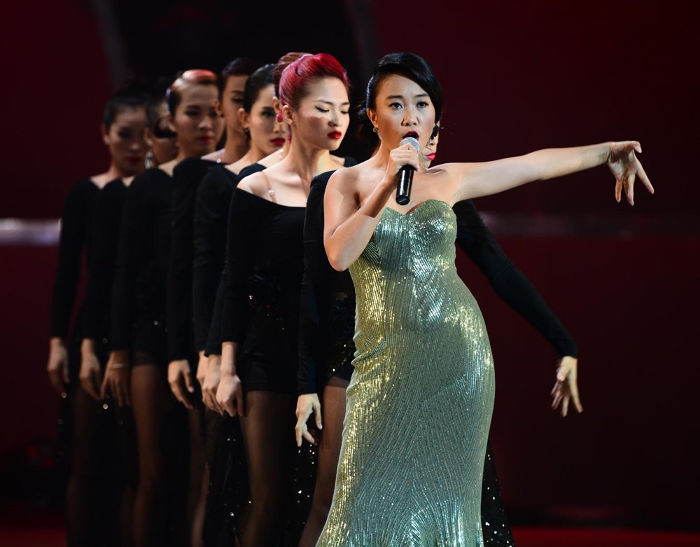 | Ngoài vai trò giám khảo khách mời, Đoan Trang còn trình diễn trong đêm với ca khúc Tình với điệu tango quyến rũ. |