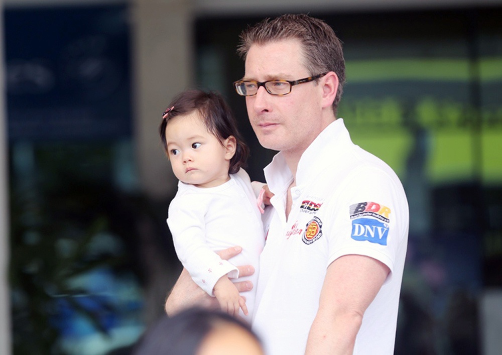 | Ông xã Đoan Trang dù gần 50 tuổi nhưng vẫn rất phong độ. Con gái nữ ca sĩ cũng thừa hưởng nước da trắng và nhiều nét đẹp lai Tây từ ba. |