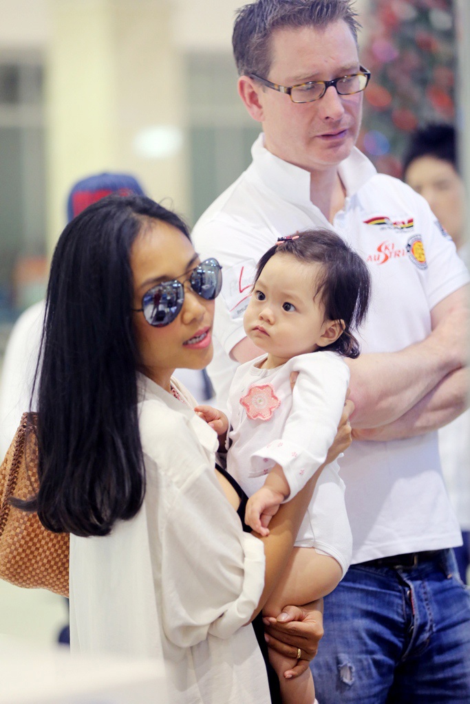 Vợ chồng nữ ca sĩ đưa con gái gần 9 tháng tuổi ra sân bay nhưng họ lại gặp chút rắc rối về giấy tờ nên cả nhà phải chờ đợi khá lâu mới được lên máy bay.