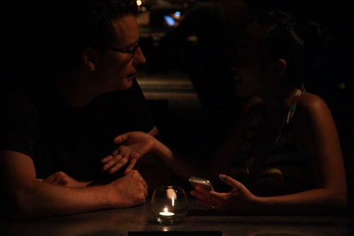 | Lúc 9h tối qua, một số người đã bắt gặp Đoan Trang cùng chồng Tây đi ăn tối cùng nhau. Dù ngồi dưới đèn khá mờ ảo nhưng nhiều người vẫn nhận ra vợ chồng nữ ca sĩ. |