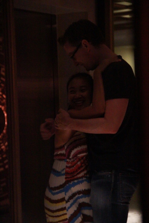 | Chồng Tây bất ngờ dành cho "thỏi socola" một nụ hôn nồng nàn. |