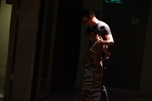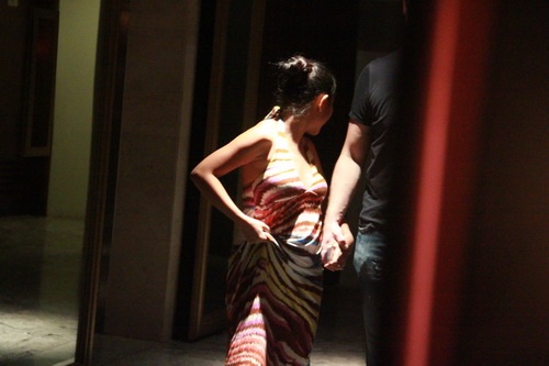 | Vì chỉ mới bầu 5 tháng nên cô vẫn sải những bước chân nhanh nhẹn bên chồng. |