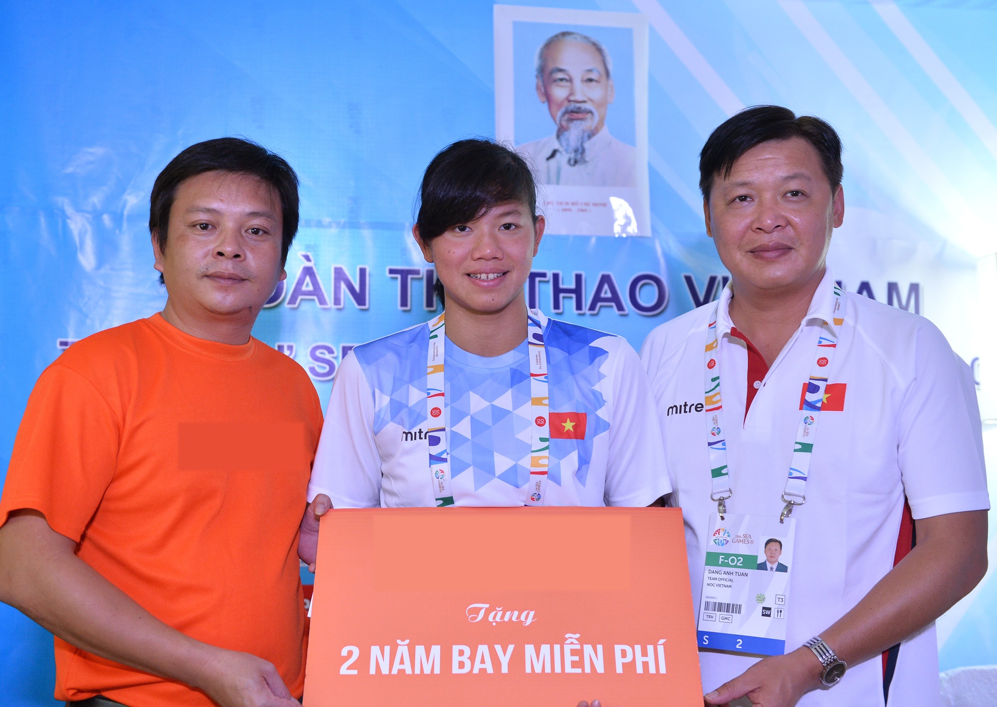 Bên cạnh đó, các nhà quán quân SEA Games còn được nhận 1 xe máy Honda trị giá 20 triệu đồng, 1 TV LED 40 inches (khoảng gần 10 triệu đồng), 1 tấm séc 5 triệu đồng, 1 cặp vé máy bay khứ hồi... cùng nhiều khoản khác.