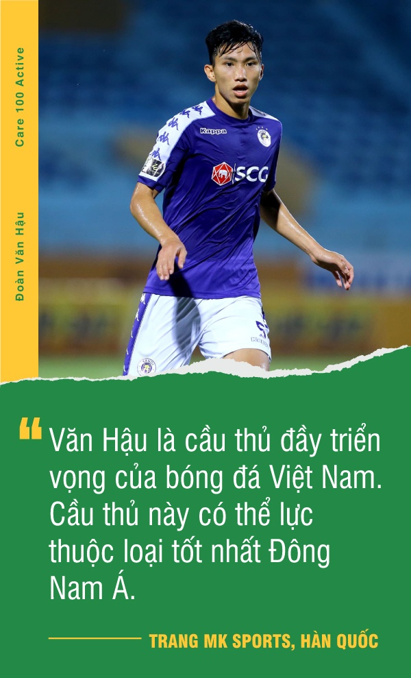 Còn trên trang MK Sports, một nhà báo người Hàn Quốc dành lời khen ngợi đặc biệt cho cầu thủ chạy cánh: “Văn Hậu là cầu thủ đầy triển vọng của bóng đá Việt Nam. Cầu thủ này có thể hình thuộc loại tốt nhất Đông Nam Á với chiều cao 1,85 m. Văn Hậu có sức mạnh để chơi trung vệ và thể lực sung mãn trong vai trò hậu vệ cánh”. Các huấn luyện viên cũng cho rằng Văn Hậu là “của hiếm” trong làng bóng đá Việt Nam vì anh vừa to cao, vạm vỡ nhưng cũng rất tốc độ, phản xạ tốt. Hậu vừa có khả năng phòng ngự, tranh chấp của một hậu vệ đẳng cấp, vừa hỗ trợ tấn công và săn bàn cực tốt.