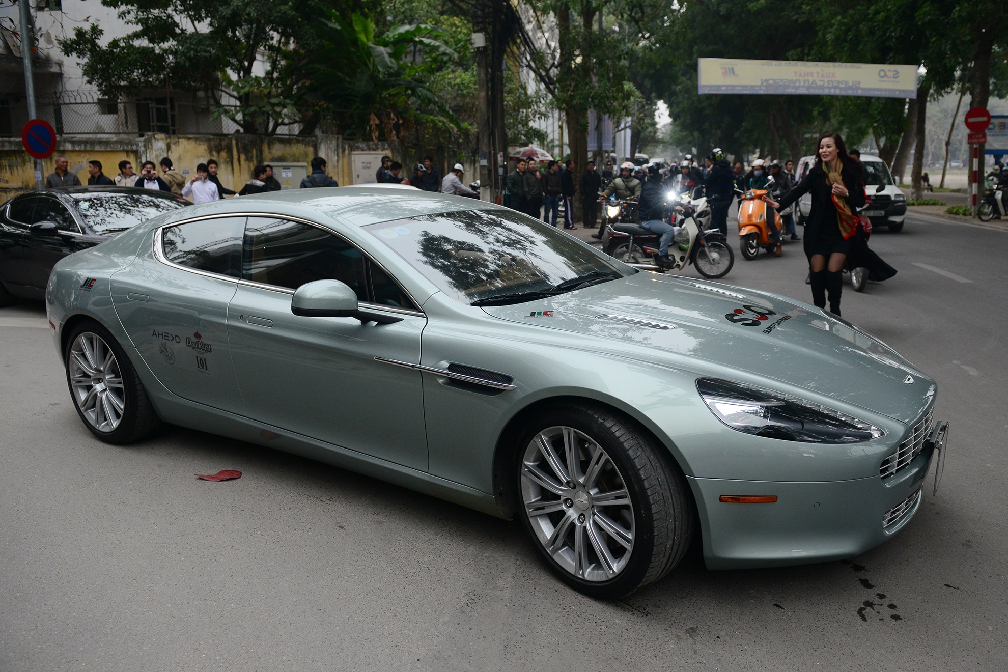 | Rục rịch chuẩn bị từ đầu tháng 12 năm ngoái, hành trình siêu xe Super Car Passion 2014 đã chính thức bắt đầu sáng nay tại Hà Nội. Trong hình là mẫu xe thể thao 4 cửa Aston Martin Rapide, sở hữu sức mạnh 480 mã lực. Đây là một trong những mẫu xe được đánh giá rất cao của Aston Martin. |