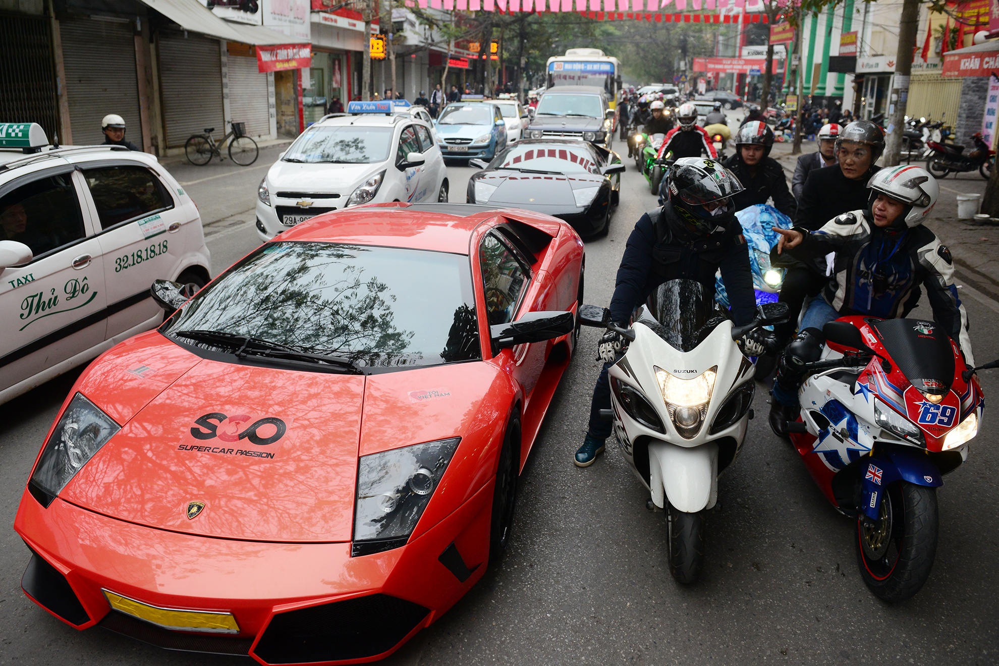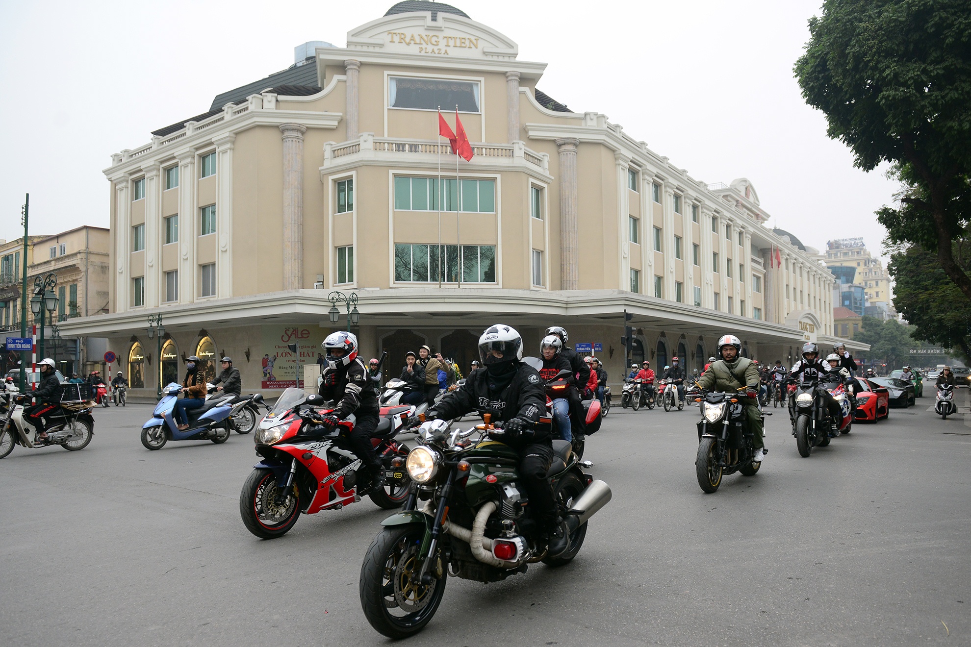 | Đoàn xe mô tô, siêu xe và xe sang di chuyển trên các con phố ở Hà Nội sáng nay thu hút sự chú ý của người dân thủ đô. |