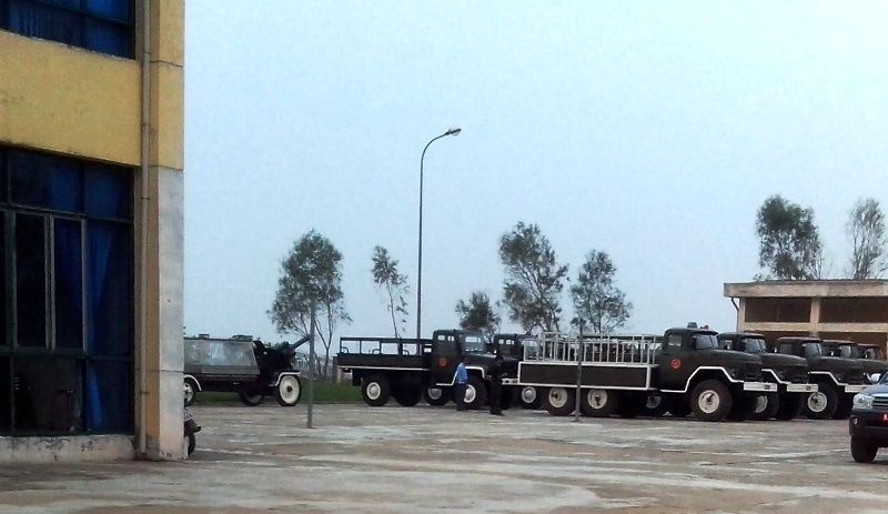 | Đoàn xe đã yên vị trong sân bay Đồng Hới và sẵn sàng chờ nhận nhiệm vụ phục vụ lễ Quốc Tang cho Đại tướng vào ngày 13/10. Hiện tại số xe này đang được canh giữ rất nghiêm ngặt |