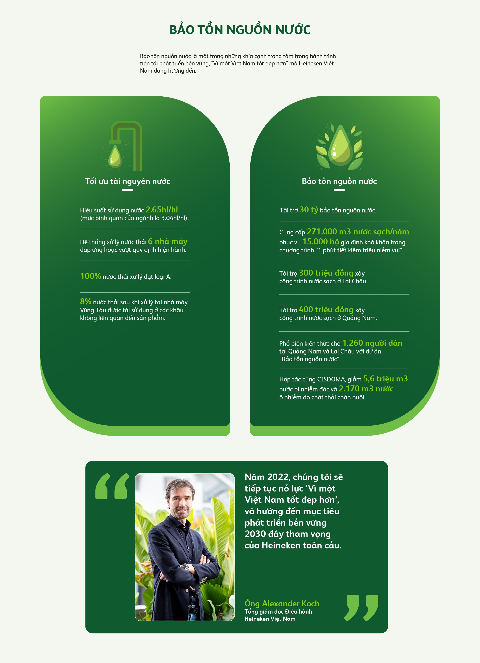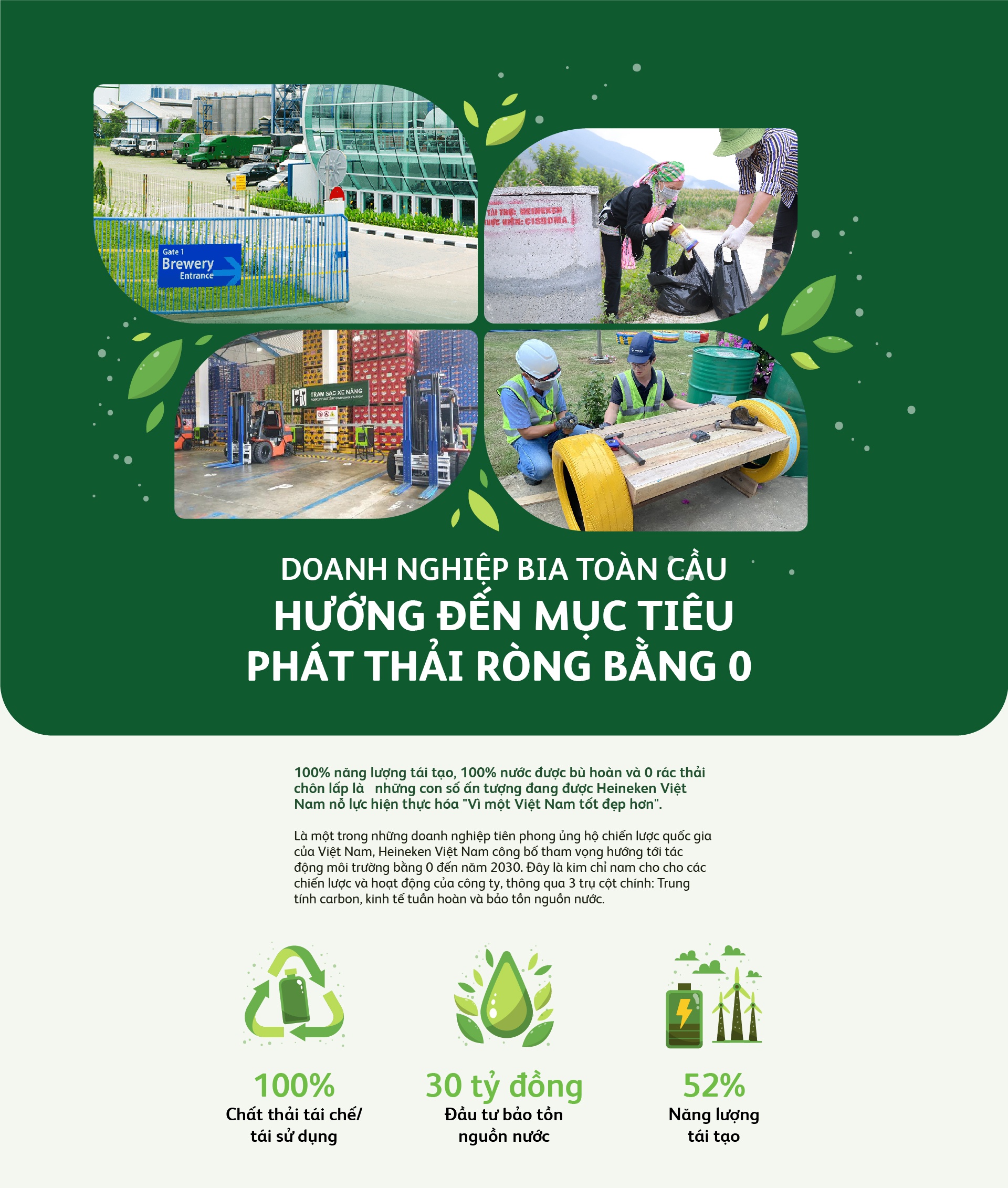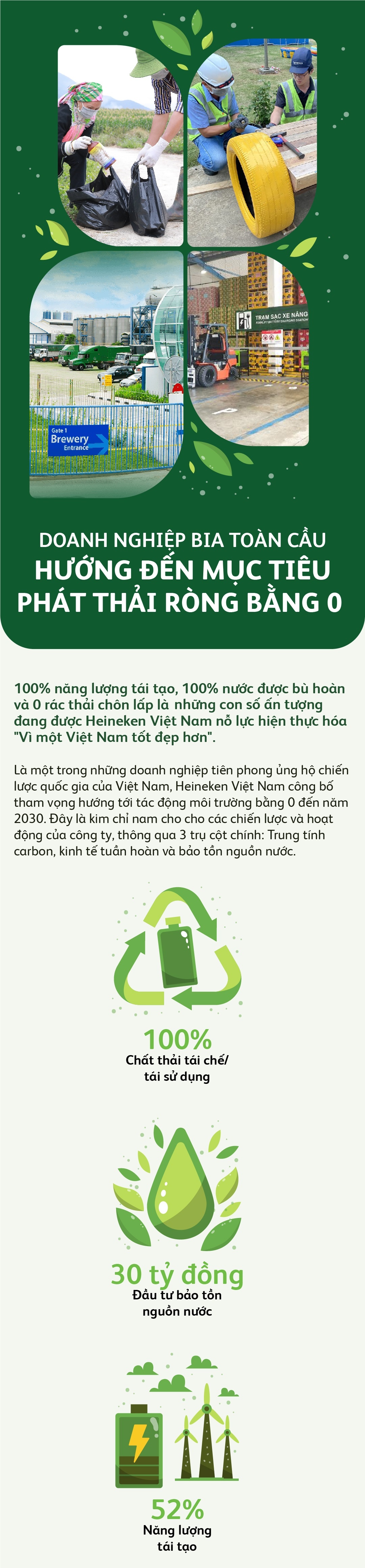 100% năng lượng tái tạo, 100% nước được bù hoàn và 0 rác thải chôn lấp là những con số ấn tượng đang được Heineken Việt Nam nỗ lực hiện thực hóa "Vì một Việt Nam tốt đẹp hơn".