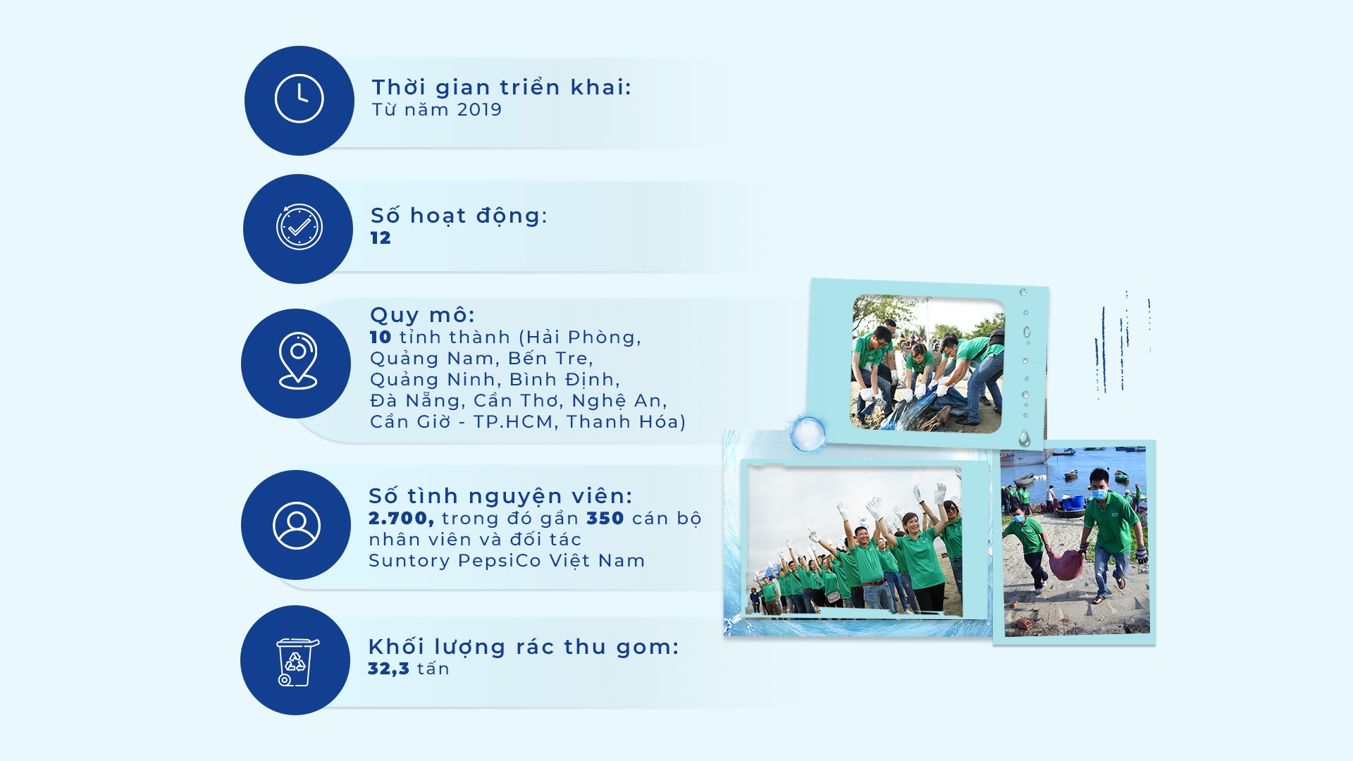 Suốt 3 năm qua, chiến dịch này liên tục tiếp diễn và mở rộng ra nhiều tỉnh thành, thu hút thêm nhiều tình nguyện viên cũng như lan tỏa hình ảnh đẹp, góp phần nâng cao nhận thức phân loại rác thải nhựa trong cộng đồng. Đến nay, Suntory PepsiCo Việt Nam phối hợp tổ chức 12 hoạt động tại 10 tỉnh thành. Trong số 2.700 tình nguyện viên, có gần 350 cán bộ nhân viên và đối tác của công ty. Tổng khối lượng rác thu gom cán mốc 32,3 tấn.
