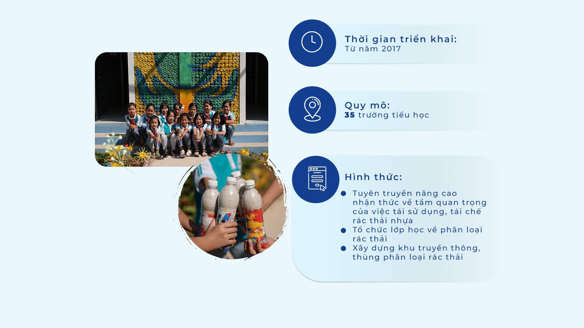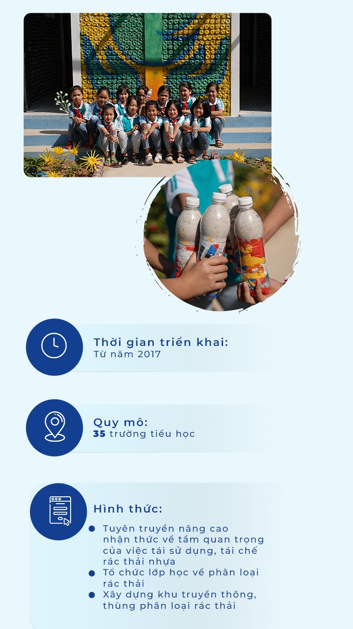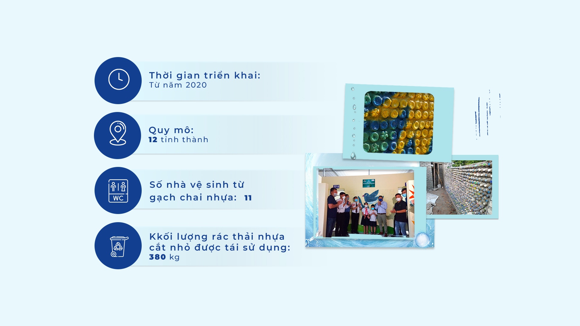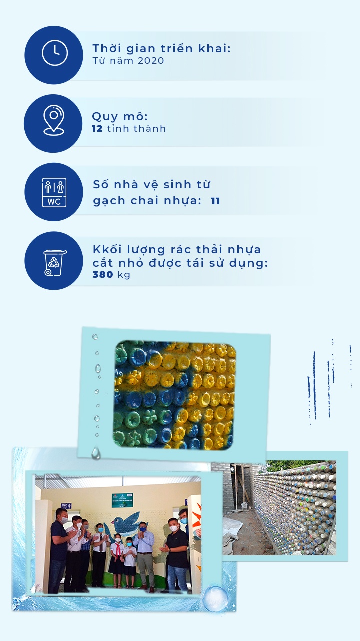 Nhờ đó, gần 35.000 chai nhựa và 380 kg rác thải nhựa cắt nhỏ được tái sử dụng, mang đến phòng vệ sinh tiện nghi cho gần 5.700 học sinh tiểu học.