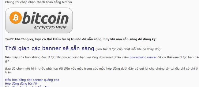 Với thông báo "Bitcoin Accepted Here", ban quản trị diễn đàn này cho biết, họ đã chấp nhận giao dịch bằng đồng Bitcoin cho việc thanh toán tiền quảng cáo kể từ một tuần trở lại đây. Như vậy, sau thời gian dài gây bão trên mạng, Việt Nam lần đầu tiên có một doanh nghiệp chấp nhận thanh toán bằng đồng Bitcoin trong các giao dịch của mình.