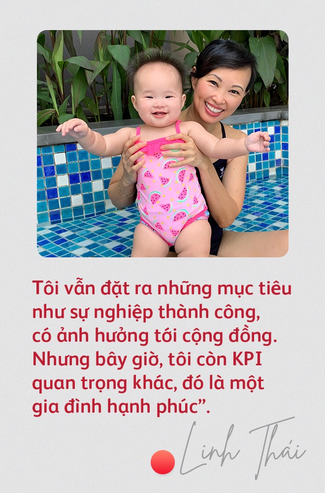 Từ ngày có con, tôi thấy cuộc sống nhiều màu sắc hơn. Tôi vẫn đặt ra những mục tiêu như sự nghiệp thành công, có ảnh hưởng tới cộng đồng. Nhưng bây giờ, tôi còn thêm một KPI rất quan trọng khác, đó là một gia đình hạnh phúc.