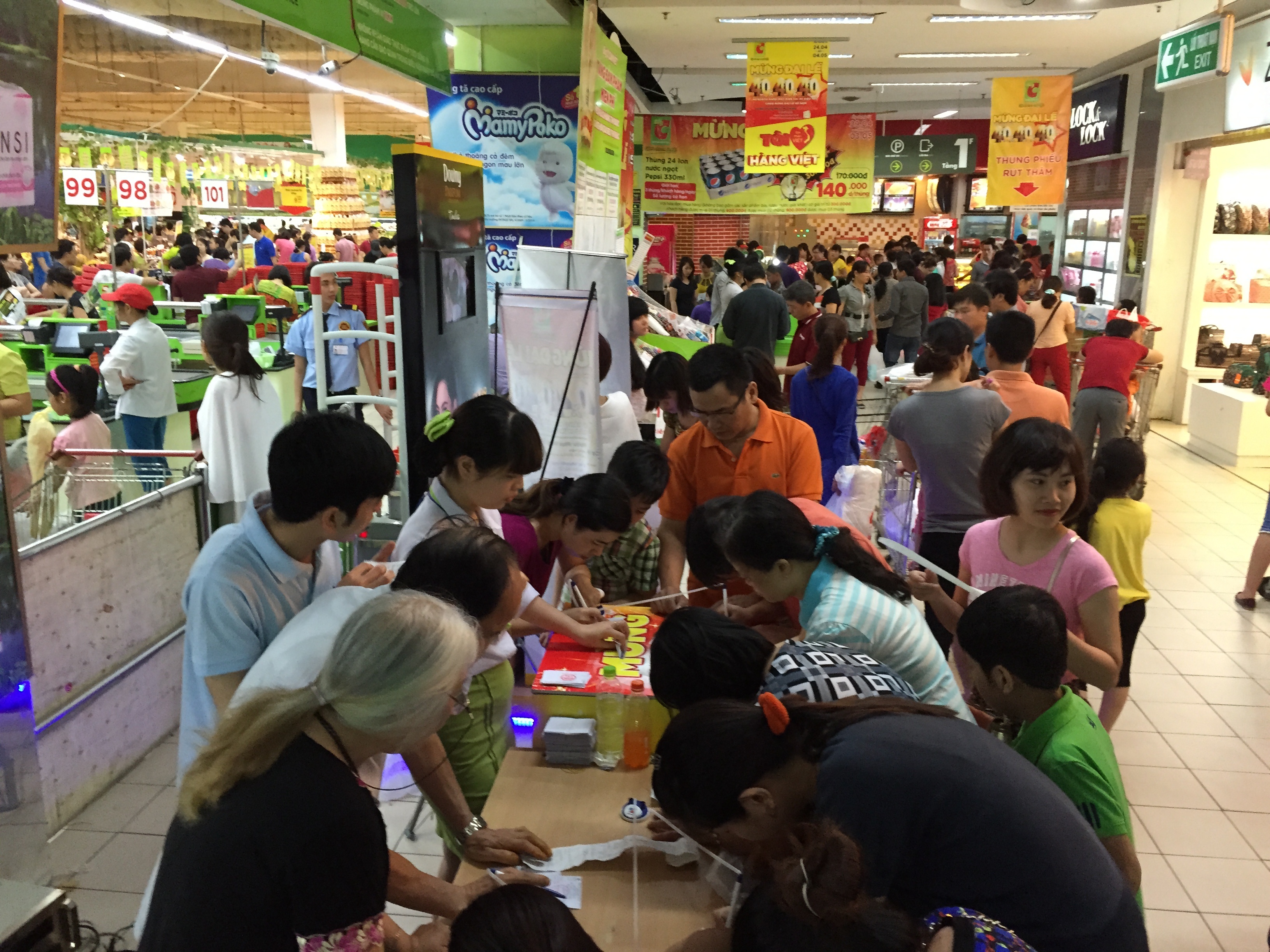 "Mua hàng hơn 300.000 đồng mới có cơ hội tham gia chương trình với phần thưởng 500.000 đồng. Cơ hội chẳng cao lắm nhưng có khuyến mại, giá nhiều mặt hàng lại giảm nên mình cũng cố mua thêm một chút cho đủ hóa đơn còn đăng ký", chị Thảo, một khách hàng có mặt tại siêu thị chiều 29/4 cho biết.