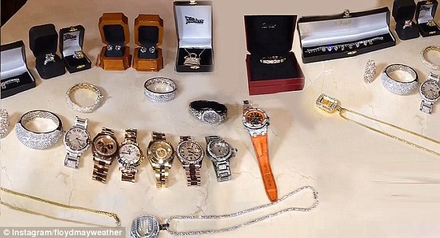 | Bộ sưu tập đồng hồ, trang sức siêu khủng của Mayweather. |
