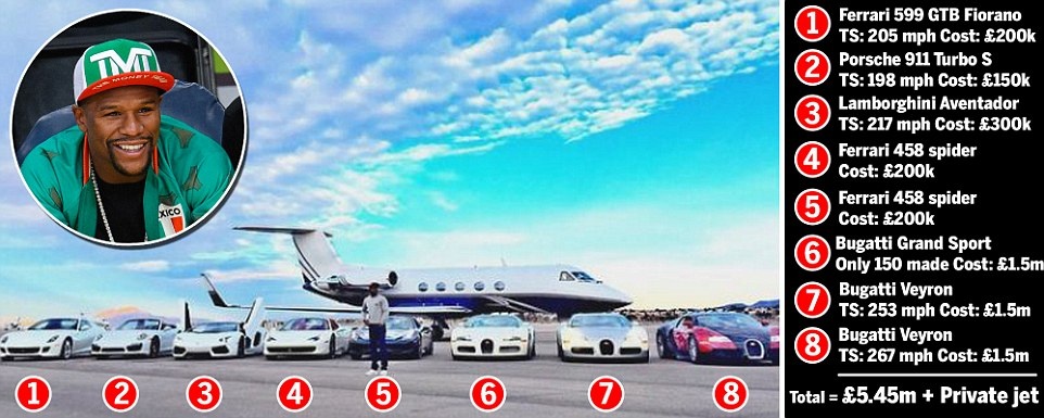 Độc cô cầu bại Mayweather khoe dàn xế hộp, phi cơ mơ ước