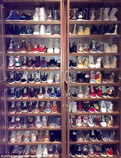 | Ngoài thú chơi xe, Mayweather còn có sở thích sưu tập quần áo, giày dép, đồng hồ...