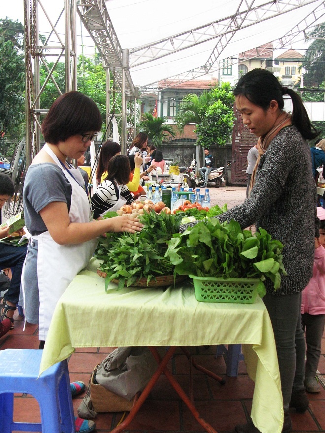 Ngoài những gian hàng hand made, đồ ăn nhanh, gian hàng rau sạch cũng rất hút khách. Toàn bộ rau được bày bán ở chợ là rau hữu cơ, đã được kiểm định VSATTP