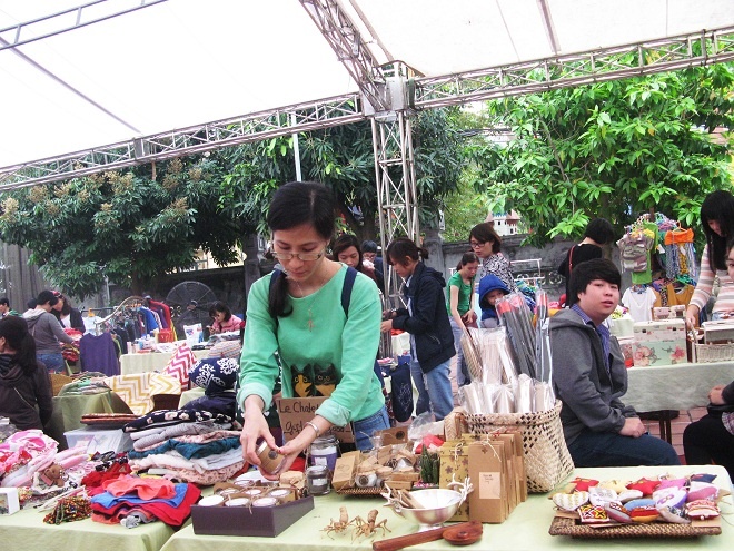 Xen với các gian hàng bánh của những anh chàng Pháp, Nhật là những gian hàng hand made: Tranh, tượng nhỏ, hoa, đồ lưu niệm… Điểm đặc biệt nhất ở những gian hàng này là không món đồ nào giống món đồ nào.