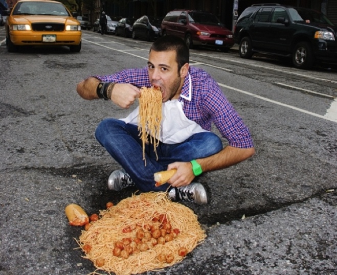 Biến ổ gà, vũng nước trên phố thành bể bơi, hồ câu hay lò nướng bánh... là những ý tưởng trang trí độc đáo của Claudia Ficca và Davide Luciano.