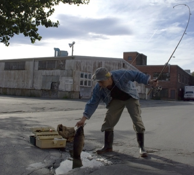 | Theo đó, ổ gà, rãnh nước... đều được sáng tạo thành hồ câu, bể bơi, gian bếp hay thậm chí là một đĩa mỳ. |