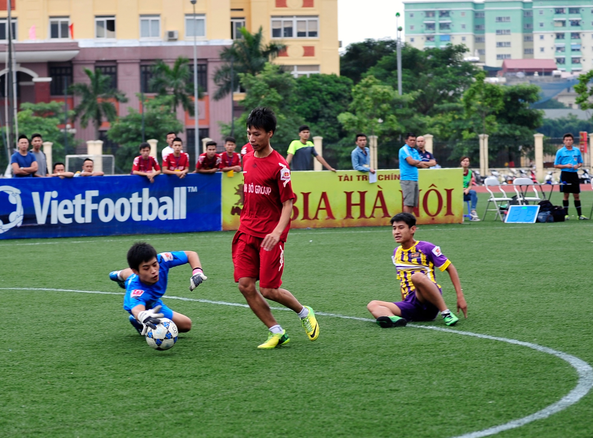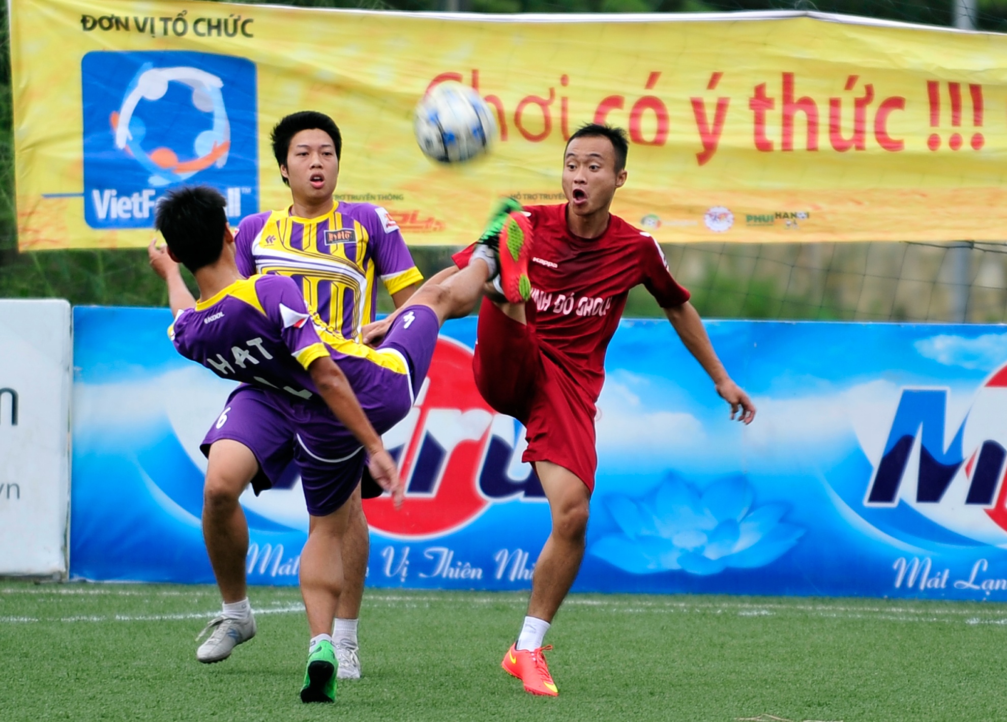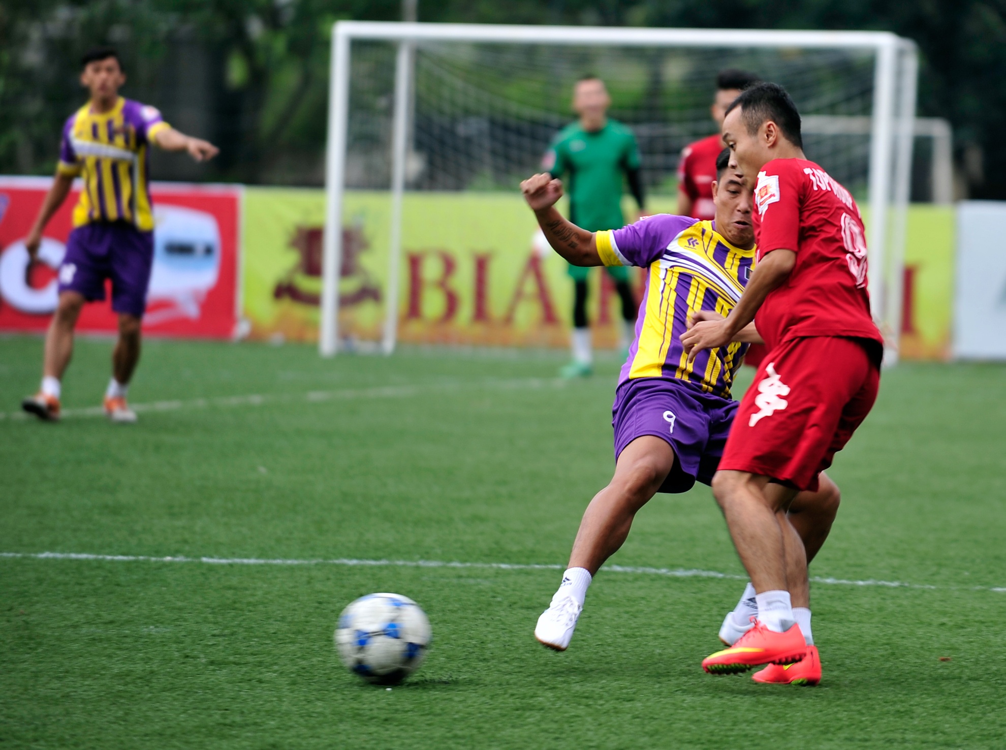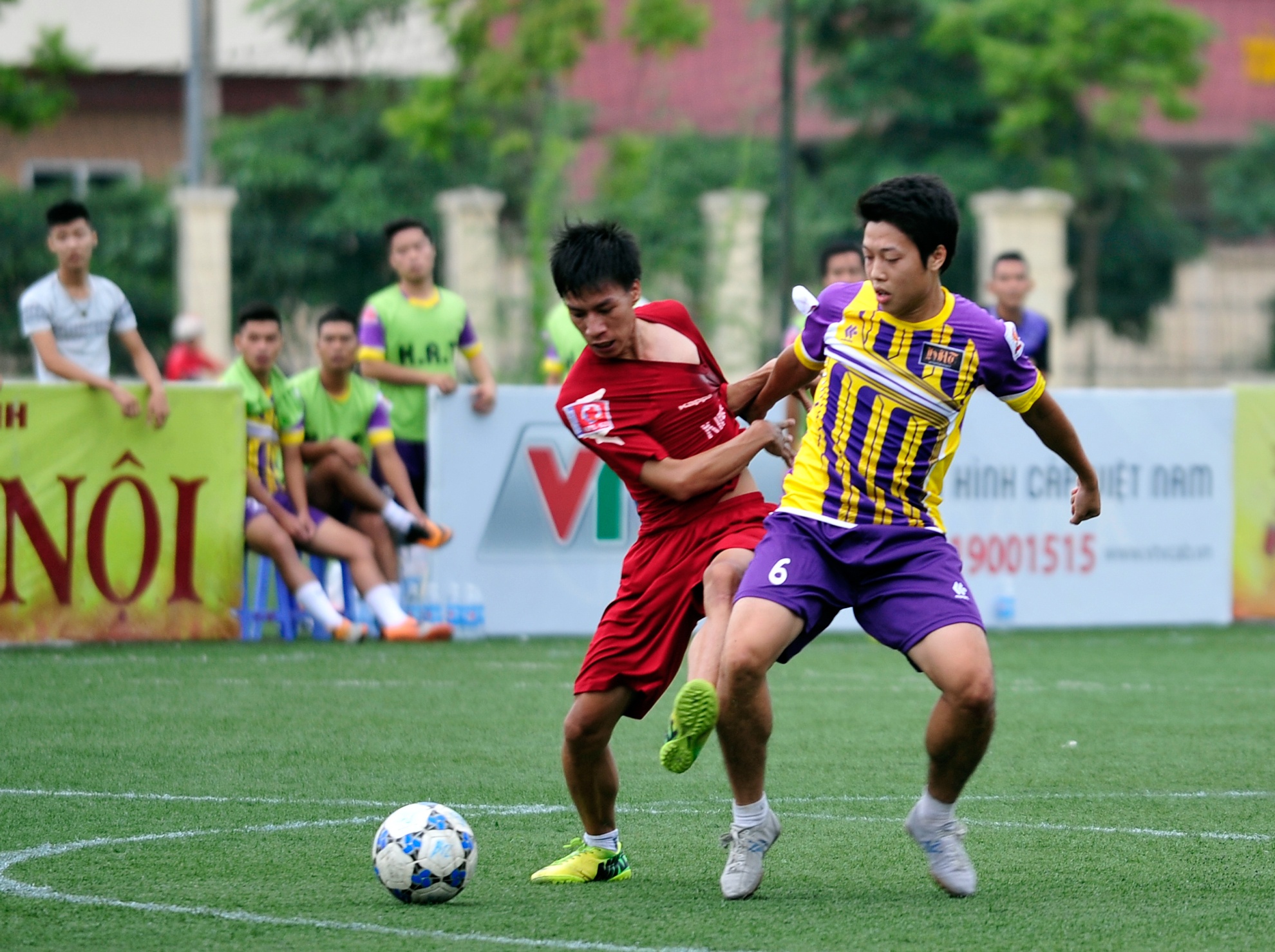 Nhiều pha lên bóng và chuyền bóng của số 6 Nguyễn Chí Khánh (đội HAT) bị đối phương tìm cách ngăn cản ở giữa sân.