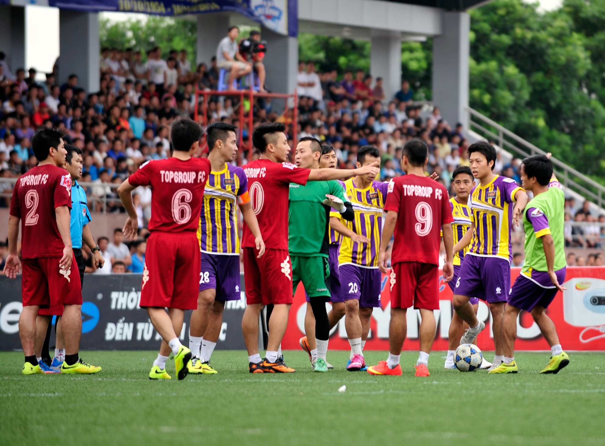 Cuối hiệp 2, trận đấu diễn ra khá căng thẳng khi các cầu thủ Top Group muốn gỡ hòa (tỷ số đang là 2 -1), nhiều pha cao chân hay lao vào lấy bóng nguy hiểm liên tục bị trọng tài thổi còi.